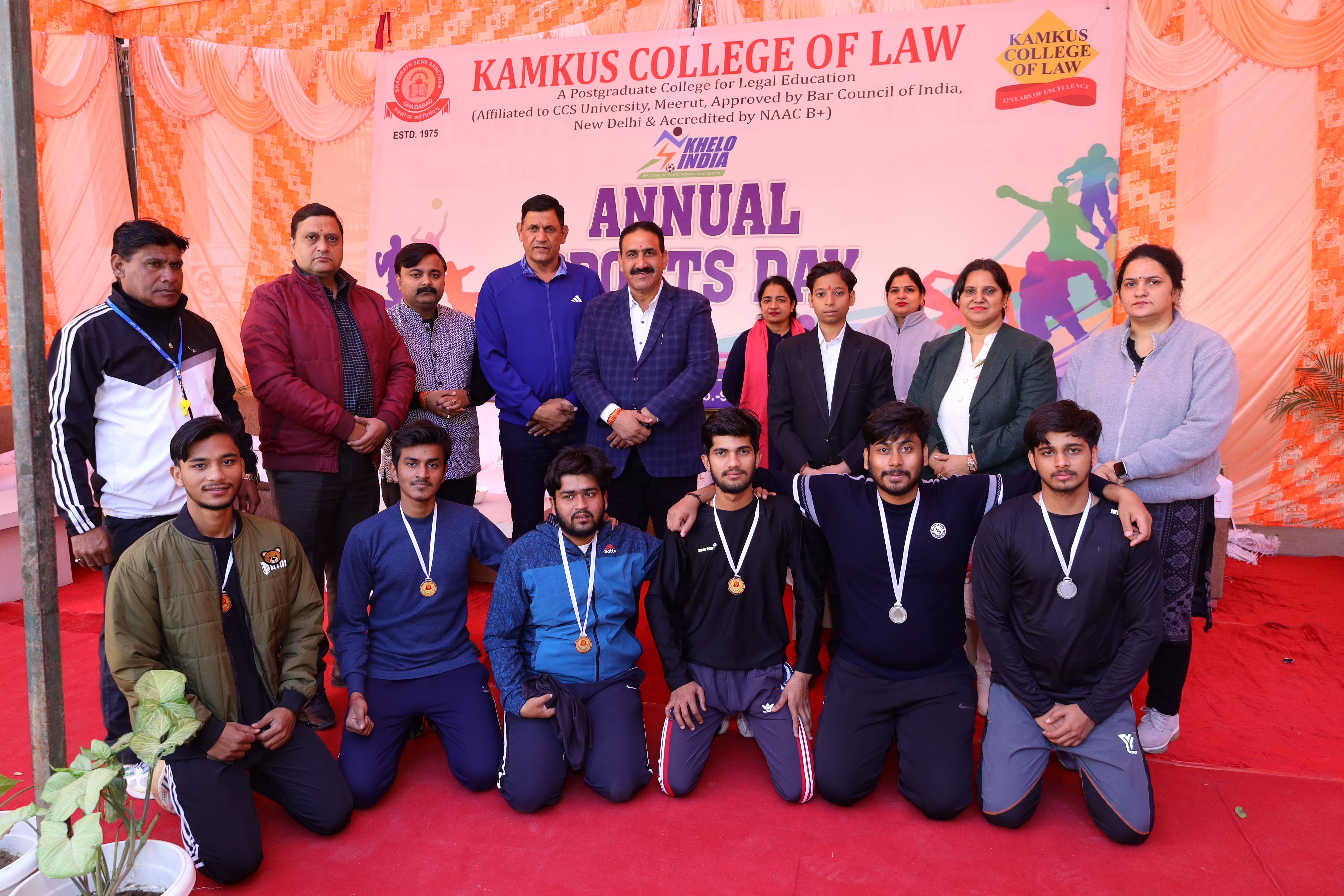 Kamkus College of Law proudly congratulates its student, Yeeshu Sharma, for an extraordinary display of excellence in shooting sports. He secured Gold Medals at the 44th North Zone Shooting Shotgun Championship 2025 (New Delhi) in Clay Pigeon Trap Shooting (NR) in both Men (Individual) and Junior Men (Individual) categories, and also won Gold at the 40th Delhi State Shooting Shotgun ISSF Championship 2025 in Clay Pigeon Double Trap Shooting (Junior Men – Individual).